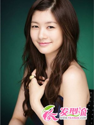 将前额刘海挽在耳后,突显出脸型轮廓。唯美的长烫发尽显女性的妩媚,深棕发色低调含蓄,适合温婉型的MM。