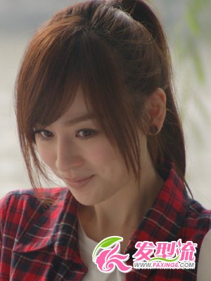 柔软的发质扎出高马尾发束造型,斜刘海与额际发丝线条流畅,从时尚动感中显现出活泼的个性,很简单的一款扎发。