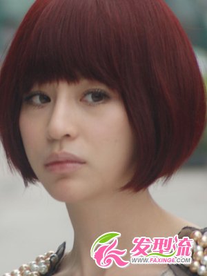 红色系染发很是抢眼,蘑菇头显得很是俏丽,发尾稍稍内弯与下巴隔开一些距离有意制造出的轻盈,显得空气感十足。