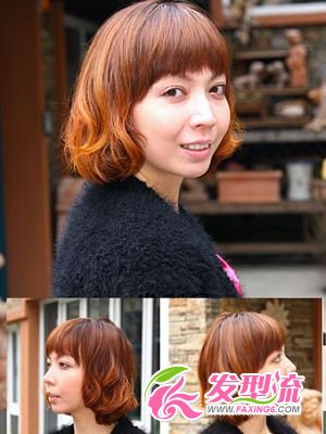 日韩正在流行的荷叶头,结合了短发烫发技巧,制造出另一种百搭发型风格。橘色系染发在人群中很是抢眼,厚重的刘海搭配烫发起到了修饰脸型的效果,微锯齿形刘海既显个性又为女生增添了几分可爱气息。