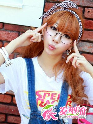 蜜糖系染发彰显出十足的日系范儿,齐刘海双马尾造型扎出街头风。马尾发束刮出毛躁感,蓬松的发质显得很是随意。豹纹头巾点缀在头顶,隐约中显露出个性女孩的狂野特质,简单的T恤搭配牛仔背带裤,很有邻家小女生的天真感觉。