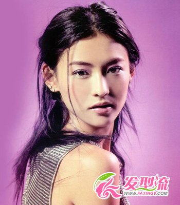 刘海和头顶部分分出一区头发,随意扎出马尾,自然毫不做作。剩下部分自然披着,充满了青春活力。刘海掉落一缕,性感撩人。