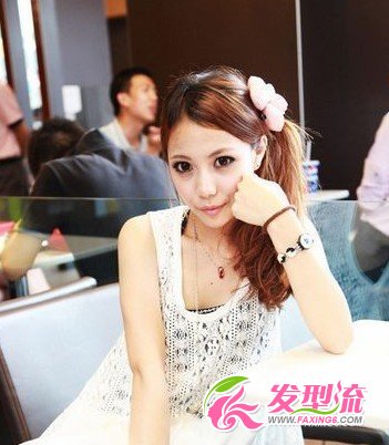 利用头发发束扎起的可爱马尾辫,非常的天真可爱,青春有活力。轻薄的齐刘海更加灵气可爱!