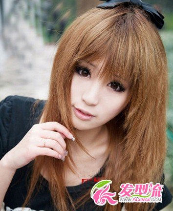 ,金黄色的染发,既有非主流的味道又不失萝莉的感觉。头顶的黑色蝴蝶结发箍更抢眼!