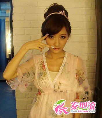 这款花苞头加上一个粉色的发带是既萝莉又有淑女的气质。