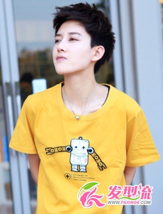 简单自然的黑色短发,比起以往的发色,收敛了张扬,多了些学生活力气息。使用吹风将前额刘海吹出飞扬效果,使造型更加动感。