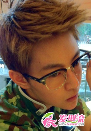 露额短发看起来很清爽,挑染的发色另造型时尚感十足。搭配边框眼镜,还能隐约中显露出斯文的个性气质,
