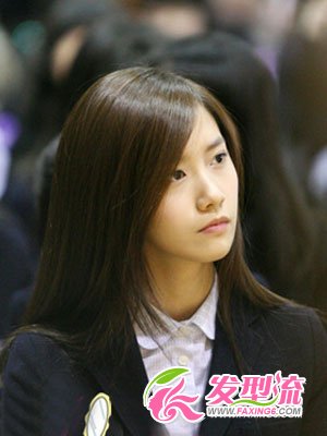 高中毕业典礼上的Yoona的学生发型依旧让人感觉到星味十足。一头柔顺的长直发很是清新自然,搭配上姣好的五官,怎么不可能成为校园风云人物?