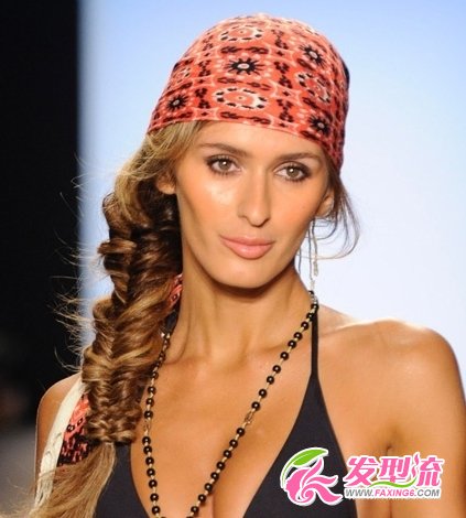 鱼尾辫是永不过时的流行,配搭印花大手帕后更富波西米亚风格。
