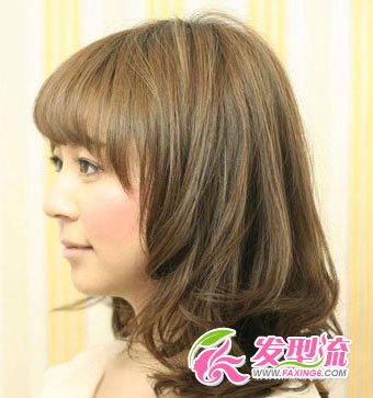 微卷刘海荷叶头适合小淑女,前面两侧厚重的头发修饰脸型的效果很令人满意,余下的卷发则散发出优雅的气质。