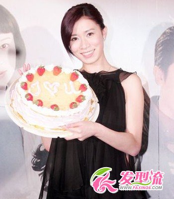 盘发造型很是优雅,过长的斜刘海制造出妩媚的意味风情,搭配黑色小礼服裙装,既显甜美又有女人的诱惑魅力。