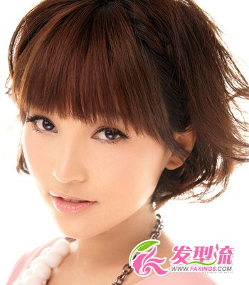 将短发烫卷,前面的刘海做出顺直效果,两种技术相结合,演绎出不同的浪漫风情。可爱中带出小女生的灵动气息。