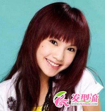 很轻盈的一款齐刘海长发,适合可爱路线的女生,发尾做出稍稍卷曲的弧度,发量适当打薄让造型更显清爽效果。