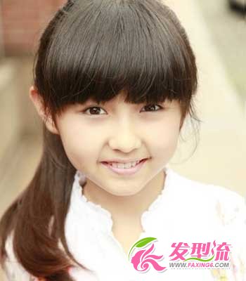 很简单的一款扎发发型,上班族家长可能没有过多的时间帮女儿扎出复杂的发型。那么,只需将发丝蛋挞扎在一侧,就能轻易的彰显女孩天真的个性。在夏日既显清爽,又很是甜美。顺直的齐刘海更是让脸型更加可爱。