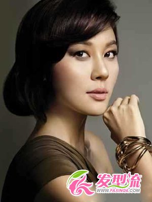 魅惑的眼神搭配这样一款复古元素浓郁的发髻,天然古朴的味道油然而生!厚重的斜刘海展露出金荷娜精致的五官,搭配露肩服饰,让人忍不住多看几眼!