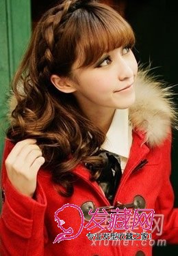 2、齐刘海的编发,麻花辫子和卷发的自然融合打造出了时尚的韵味是冬日不可抵挡的诱惑。所以MM们可以参考下在自己的卷发上面增加一些心机的装扮是很有必要的。