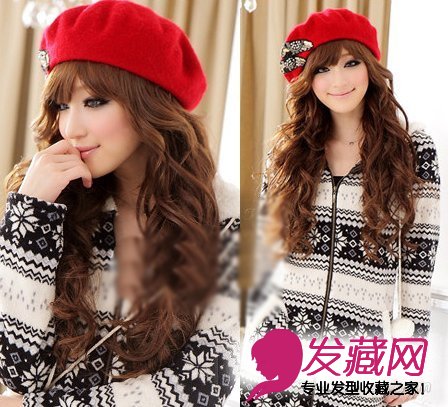 发型升级为棕色系的长发搭配一款亮红色帽子,能瞬间提亮肤色,让脸色白里透红惹人爱!