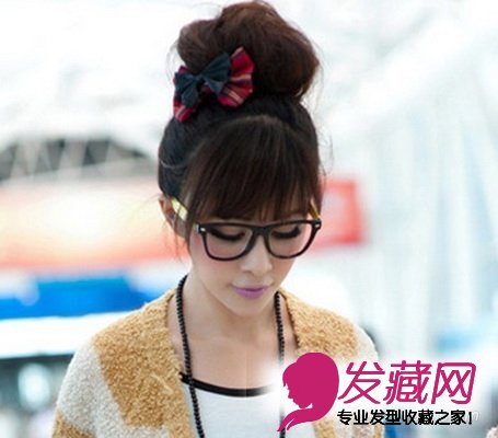韩国街头风格花苞头。甜美的花苞头配上轻薄的齐刘海,蝴蝶结的发饰凸显淑女的味道,打造乖乖女的形象。