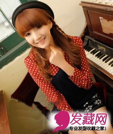 ,在两侧编两个小辫,很淑女很文静的感觉。