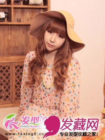 甜美而浪漫的大波浪卷发气质十分惹人喜爱。齐刘海的造型设计修饰了脸型,让你看起来更加的乖巧可爱,充满更多的童趣味,搭配缤纷甜美的波点图案的连衣裙,甜美而靓丽散发着青春的魅力。