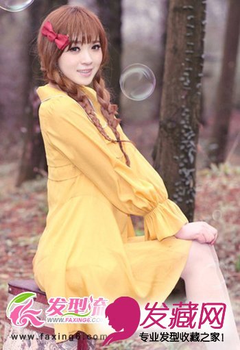 双扎的麻花辫马尾,俏皮可爱,是乖巧文静女孩很是适合的发型,也是今年最流行的发型之一,棕色的