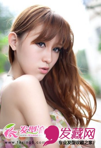 给人以浪漫的感觉,长长的卷发侧放,风情迷人。棕色的染发衬托出女生白皙通透的肌肤,搭配碎花的裙子,性感中又有甜美感觉。
