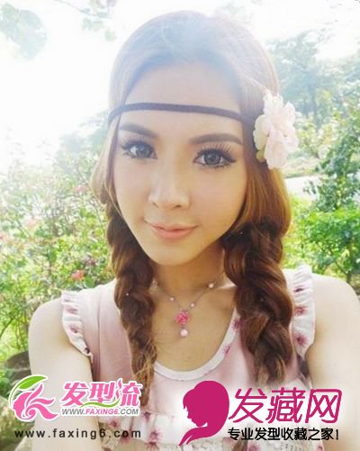 纯美的双麻花辫,拉松麻花辫的同时,制造两股麻花辫的大小上的不对称感,中分的