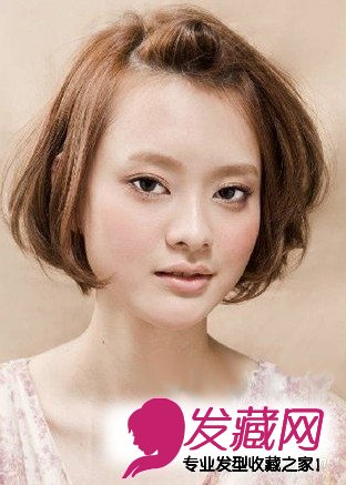 1.刘海部分向上梳起,顺时针或逆时针拧半圈后,用小发卡固定在头顶,做成蓬蓬造型,解放额头肌肤,令人耳目一新。
