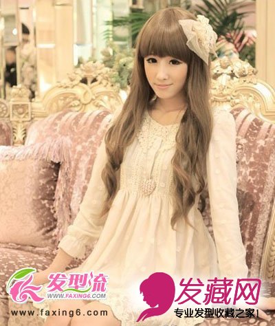 轻盈飘逸的长卷发特别可爱,洋气十足的刘海,戴上蕾丝大蝴蝶结发饰,整个看起来就像芭比娃娃。小清新的造型,让人赏心悦目。