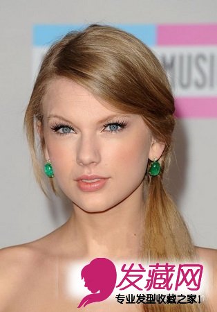 有着大宽额头的泰勒是标准的倒三角脸型,这种并不小巧的脸型可没耽误她成为欧美甜心,只要二八分大偏头的歪辫立马让她甜度爆棚,留一撮头发放在两颊,还能让气质更清新。