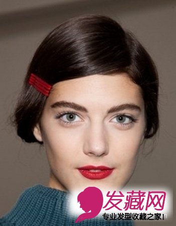 的千篇一律,俏皮的偏头发型是不是非常有新意呢?拿出复古味的小红夹,别在头上让头发更有光泽,还非常有怀旧味呢。