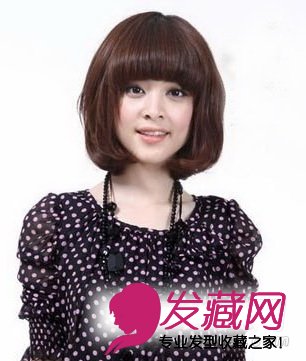 此款中短发日系波波头发型十分俏皮可爱,厚重感的齐刘海和在下巴处内扣的发尾完美地包裹了整张脸,使瘦脸的效果倍增。棕、栗两色挑染的染发色非常有时尚感;女生发型不经意将透露出的可爱,很好地塑造了一个甜美少女的形象。