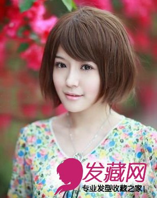 呈八字形的斜刘海绽放不一样气质魅力,非常清纯可爱。恰好到下巴的头发长度遮住了下颌额和两边脸颊的肉肉,使下巴更显尖细。棕黄的染发色让这款BOBO头女生发型朝气蓬勃,同时还散发公主般的高贵气质。