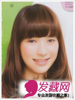 平整的齐刘海,及肩的中长发,内弯的发尾是亮点,展现出乖乖女的可爱气质!