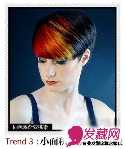 黑色或深色发色基础上的亮色渲染,能大大增加头发的立体感和光泽感,刘海部分的同色系渐变挑染,对于追求另类、张扬个性的年轻一代是最佳选择。