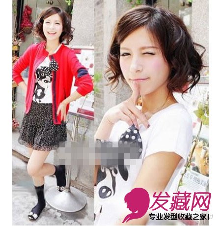 具有修饰脸型作用的斜刘海是打造俏皮小脸的法宝,肩上长度的短小荷叶头加上空气灵动感的泡泡卷,尽显甜美。