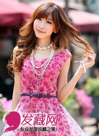 2012女生流行发型自然少不了女性魅力气质的卷发发型,整款卷发采用外翻的发型设计,充满着时尚的魅力气息,齐刘海的流行发型,更具减龄甜美效果,板栗色的染发颜色增加了这款女生发型的时尚魅力。
