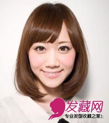 一款十分简单的发型,巧克力色将肤色衬托得更为自然白皙,齐眉的斜刘海很好地修饰了脸型,给人清爽甜美之感,是不是看上去小了几岁?