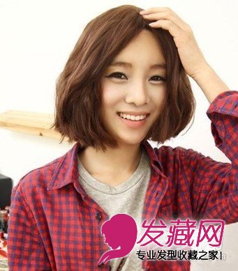 甜美的麦穗烫短发,中分的长刘海能巧妙的修饰脸型,温暖的栗色