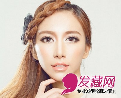侧边的微卷长发,随性妩媚,新鲜的刘海编发点缀,浪漫动人,侧边再配上一个暗色发饰,时尚典雅。