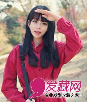 小编点评:薄薄的齐刘海非常简单清爽,披肩的长发将发尾修剪整齐显得更加温柔婉约,黑色的自然发色更是清纯甜美,很有学院女生感觉的一款发型。