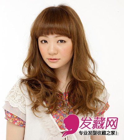 刘海在及眉却带弧度,有点儿厚重,是可爱派的刘海选择,然而还有带一点圆润的感觉,发尾集中在中间之余,既有正向和反向的卷发!凌乱又格外小清新哟!