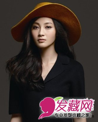 姚笛这款中长发烫发发型,将她那成熟的女性魅力展现的淋漓尽致,将中长发发型打造出波浪卷的烫发造型,既增加了发型的质感丰盈效果,又凸显女生发型的时尚魅力,中分的刘海发型,修颜的同时又展现出了成熟的女性气质,搭配一顶宽边爵士帽,有着几分帅气感。