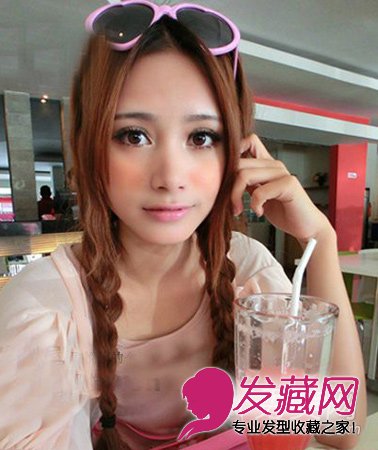小编点评:邻家系女孩麻花辫,加中分长刘海搭配气质又修颜。再搭配一款粉色眼眶墨镜出街可爱有抢镜!