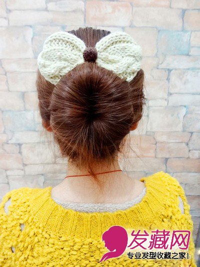 步骤10:冬天的时候可以带给毛线编织的蝴蝶结发夹,让就算扎起来的头发,也看起来暖暖的。
