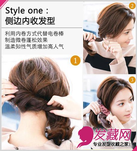 Step1、将整体头发从左向右开始,一次向内扭转并扭紧,不要留多余碎发在脑后,堆于右侧耳朵下方。