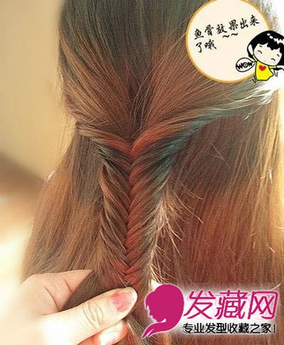 鱼骨辫的编法图解 2分钟搞定淑女发型(6)