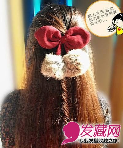 步骤八:再配上一款漂亮的发饰,这款唯美的鱼骨辫编发发型就完成了。
