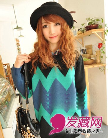 披肩的中长款蛋卷头,金色系的染发颜色,非常的潮流抢镜,微微斜分的刘海甜美修颜,加黑色系礼帽搭配潮范十足。