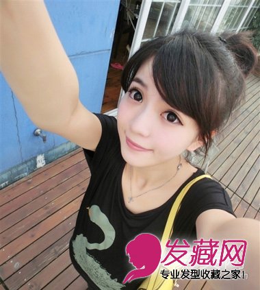 打造学院女生最爱的活泼清纯,选择斜刘海的百搭丸子头最合适。集中头顶的秀发,后面扎起发髻,盖住额头的刘海,明亮的大大双眼,清新灵动,明媚的小女子。